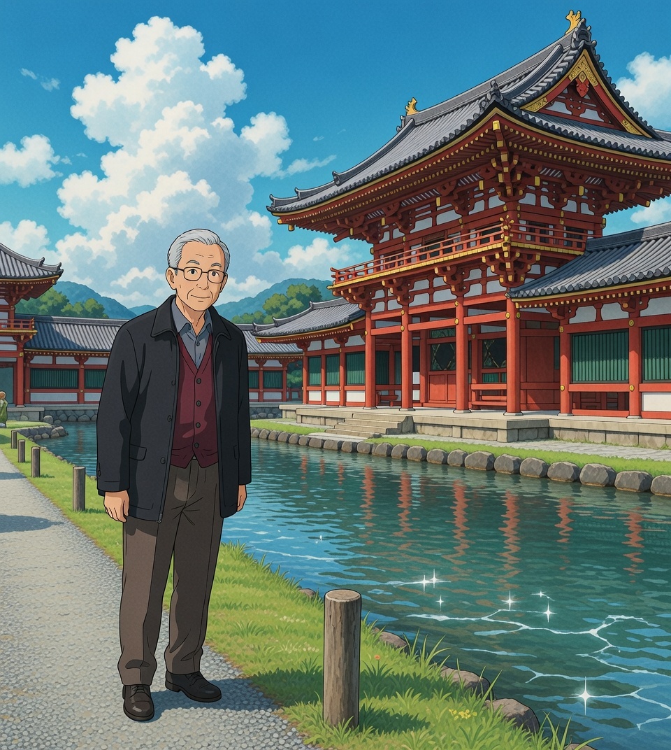 • 京都に7年間住んでいてついぞ訪れる事のなかった宇治平等院へ妻とドライブで出かけた。 道路状況は幸運にも大きな渋滞はなく行き帰りともスムーズに移動できた。 中学の遠足以来、実に63年ぶりにみる世界遺産には国外からの観光客を含めて多くの人が訪れていた。 好日の上に混雑もほどほどで気分も穏やかに保てて国宝の阿弥陀如来像の慈悲深い表情に心が洗われた。 また人気店の抹茶ゼリーとソフトのスイーツも十分堪能し甘い思い出が残る一日となった。