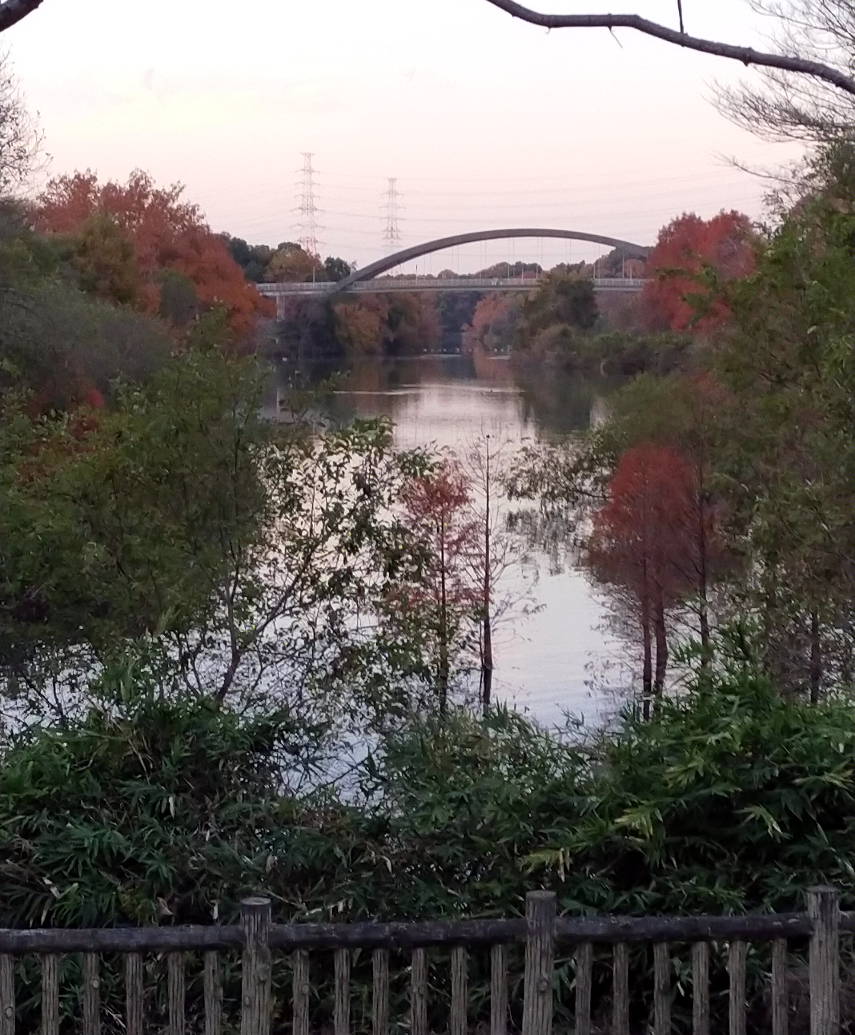 光明池遊歩道:桜 大橋池尻からの眺望 紅葉 落羽松並木